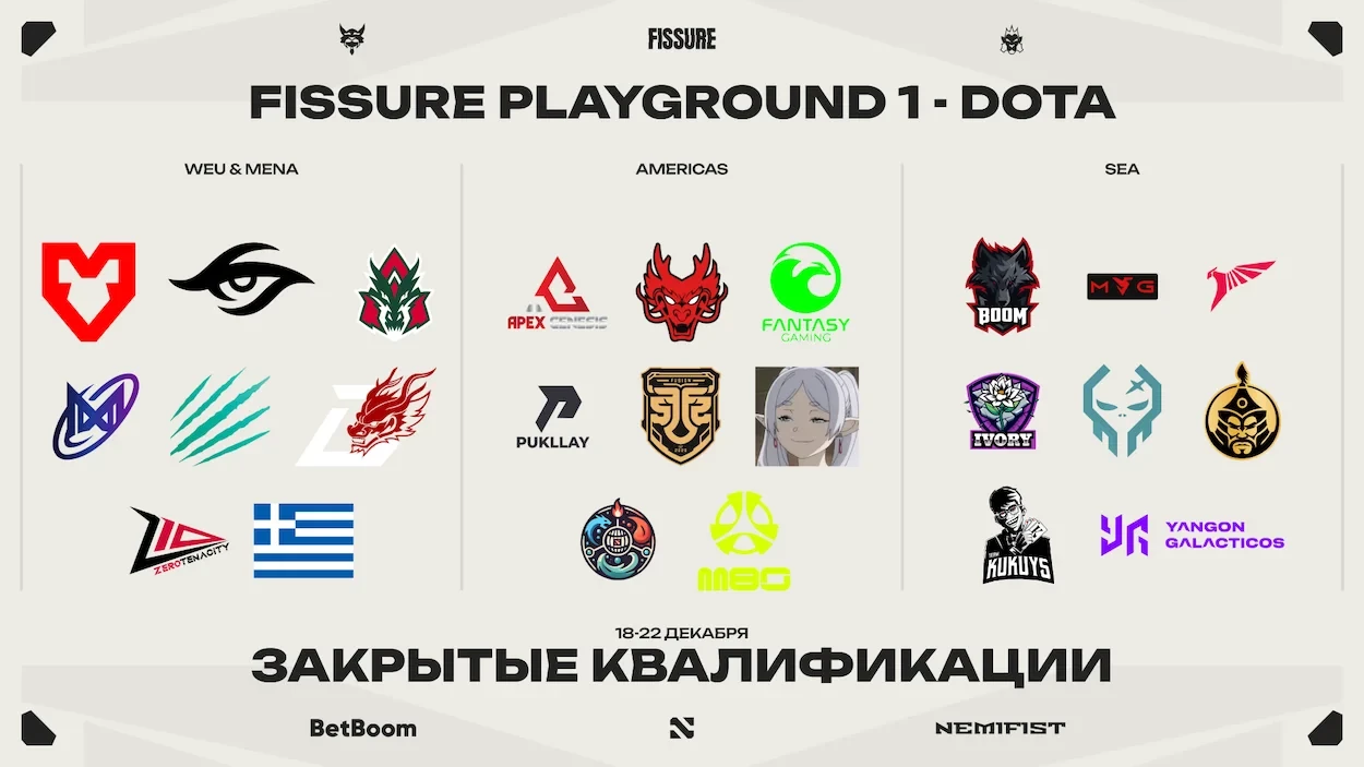 Ранее FISSURE также анонсировала список кастеров, которые будут освещать матчи закрытых квалификаций турнира для команд Западной и Восточной Европы.