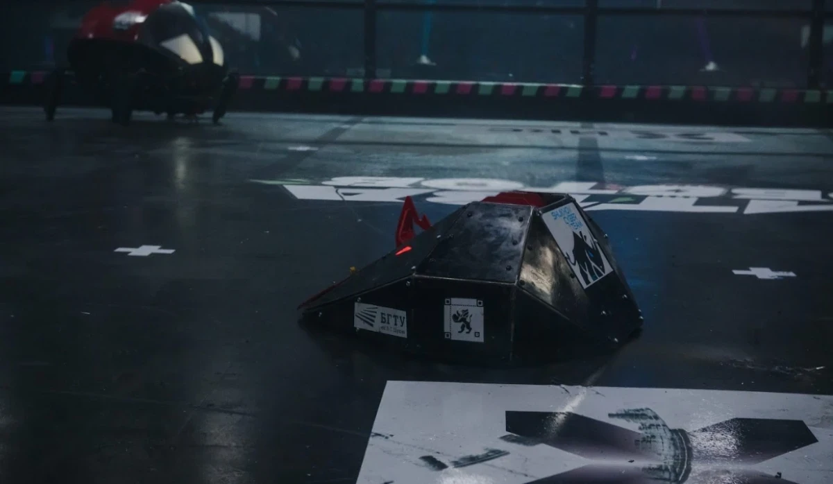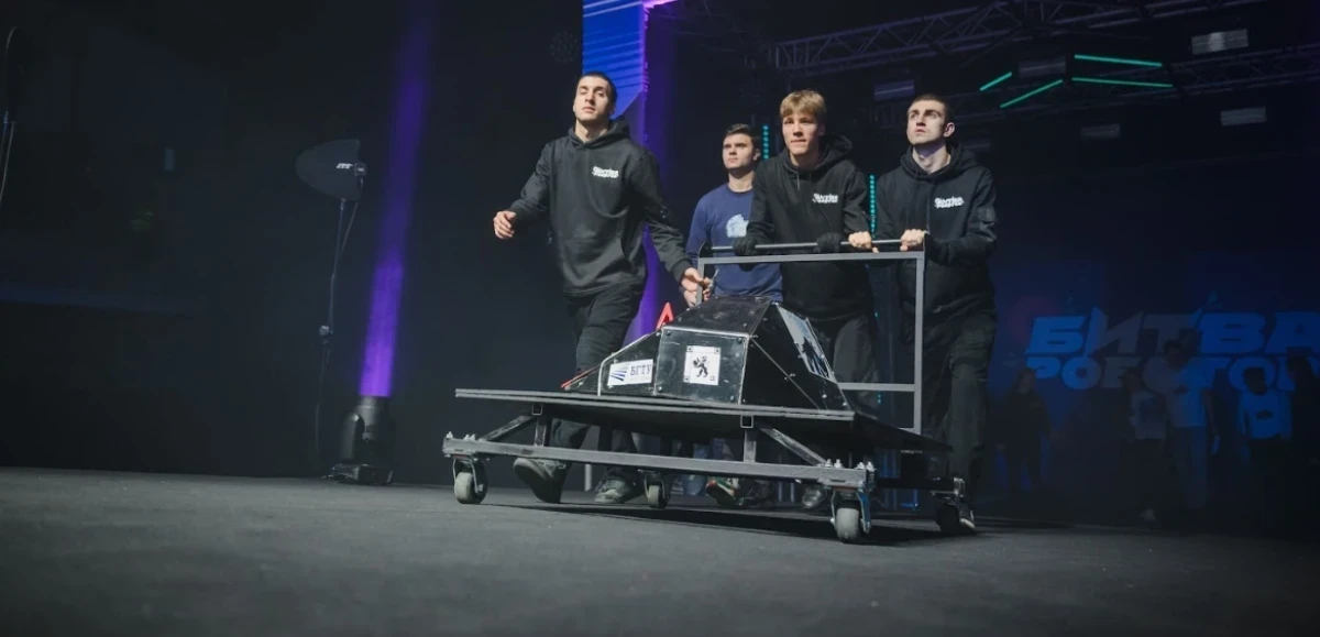 Команда из Белгорода показала на чемпионате «Битва роботов» свою разработку — робота «Носорог», созданного по мотивам поведения одноимённого животного и оснащённого механизмом, напоминающим работу его рога.