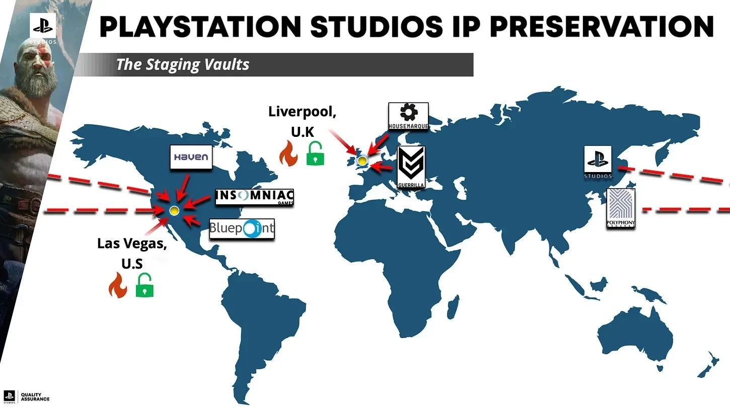 Уже сейчас архив содержит 650 терабайт данных. Это более 200 миллионов различных файлов, список которых постоянно пополняется материалами, созданными за всю 30-летнюю историю PlayStation. В данный момент на Земле есть два подобных хранилища на разных континентах. За ними закреплены конкретные студии, которые должны сохранять собственные наработки и отправлять их в хранилище.