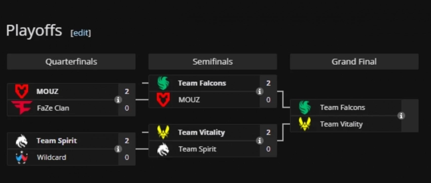 Так что теперь Team Spirit занимает третье-четвёртое место (вместе с MOUZ они получат по 40 тысяч долларов). А за лидерство на BLAST Rivals Spring 2025 теперь будут бороться Team Falcons и та же Team Vitality. Матч начнётся сегодня вечером и определит, кто получит главный приз.