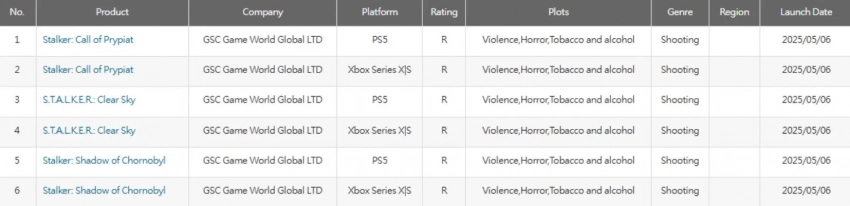 Самое интересное о кино на YouTube канале Игромании!Обложка: постер S.T.A.L.K.E.R. Legends of the ZoneВ сети обратили внимание, что сборник S.T.A.L.K.E.R. Legends of the Zone, состоящий из классической трилогии шутеров, получил возрастной рейтинг для PlayStation 5 и Xbox Series на Тайване. Речь идёт именно о версиях для текущего поколения консолей, тогда как сборник для PS4 и Xbox One получил свой рейтинг ещё в марте 2024 года.