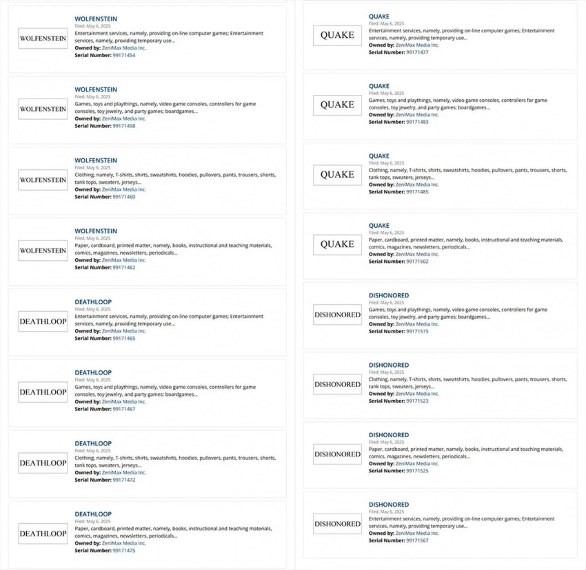 Отмечается, что ZeniMax не оформляла новых торговых марок с августа 2024 года. Остаётся надеяться, что глобальный пересмотр прав на популярные франшизы как-то связан со стратегиями их развития. Но пока что о новых играх серии Wolfenstein, Deathloop, Quake и Dishonored даже слухи не появлялись.