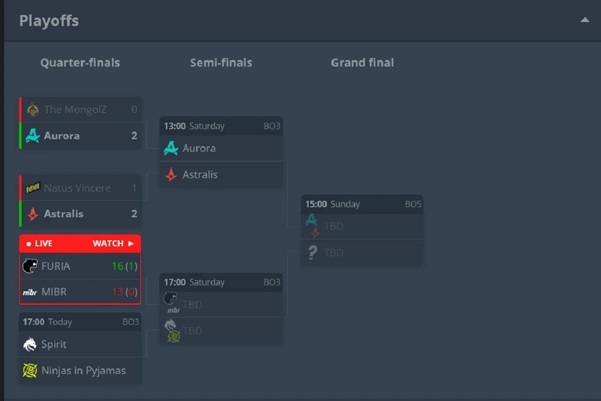 Что касается других матчей от 16 мая, то команда TheMongolZ проиграла коллективу Aurora со счётом 0:2 по картам и так вылетела с PGL Astana 2025. Сама Aurora в полуфинале встретится с Astralis. В 17:30 по МСК же будет проходить матч Ninjas in Pyjamas против Spirit — «ниндзя» уже пошутили, что вселенная их ненавидит.