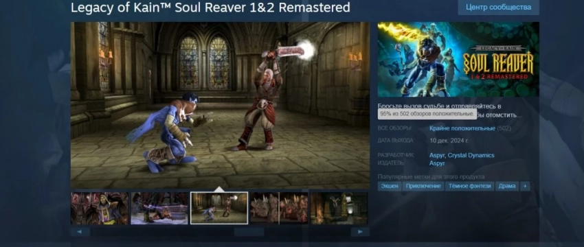 Ремастеры Legacy of Kain Soul Reaver получили «крайне положительный» приём в Steam