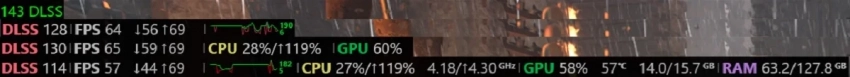 • значение FPS с отличием кадров, сгенерированных с помощью DLSS или FSR, от кадров игры;