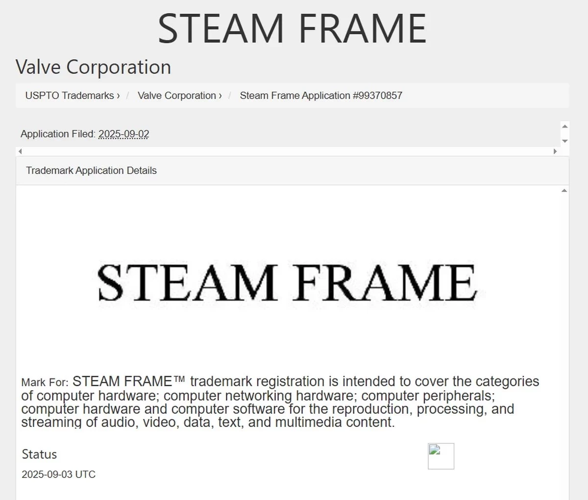 Valve зарегистрировала товарный знак Steam Frame — он относится к компьютерному оборудованию