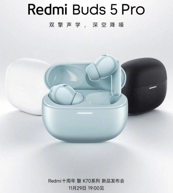 Беспроводные наушники Redmi Buds 5 Pro, в свою очередь, будут представлены в чёрном, белом и синем вариантах исполнения. Они будут оснащены системой активного шумоподавления, фильтрующей звуки громкостью до 52 дБА. В состав наушников Redmi Buds 5 Pro войдут 10-мм динамические драйверы с керамическим покрытием и 11-мм низкочастотные динамиками с титановым покрытием.
