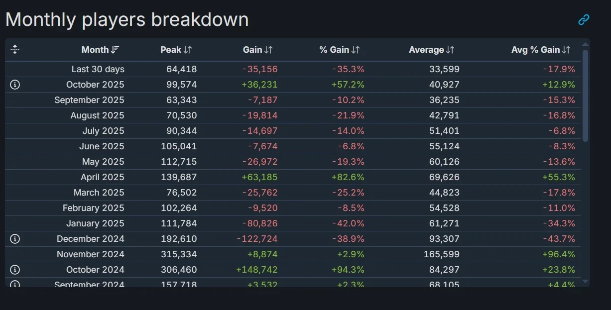 2 фотоДа и в целом у Call of Duty в Steam не особо всё хорошо с онлайном в последние месяцы. В октябре, напомним, проходили акции с бесплатной игрой в Black Ops 6.