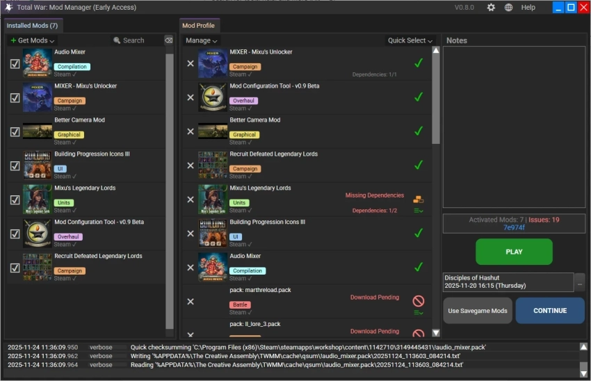 Новинка проста в использовании. Когда игрок запускает Total War: Warhammer III в Steam, у него появляется окно с выбором: сразу войти в игру, открыть лаунчер или мод-менеджер. Тот уже переведён на русский язык, так что проблем с управлением не возникнет.