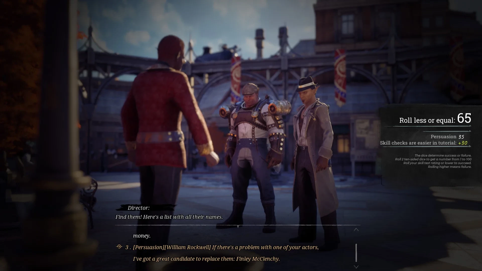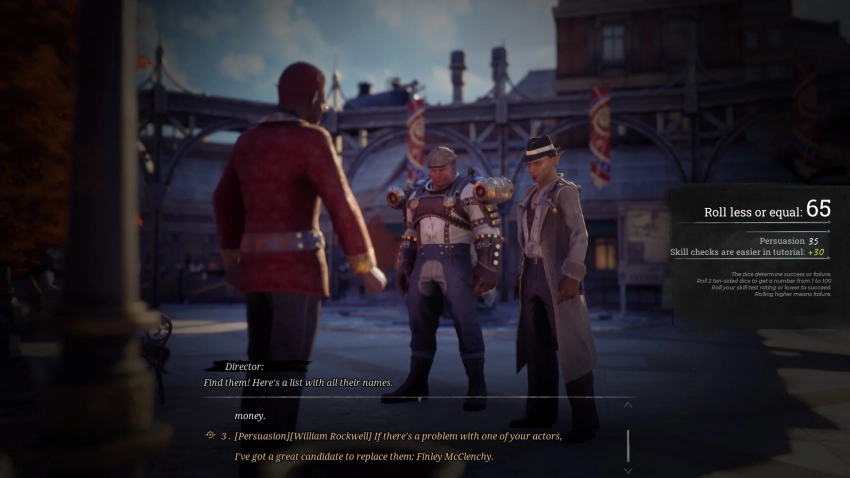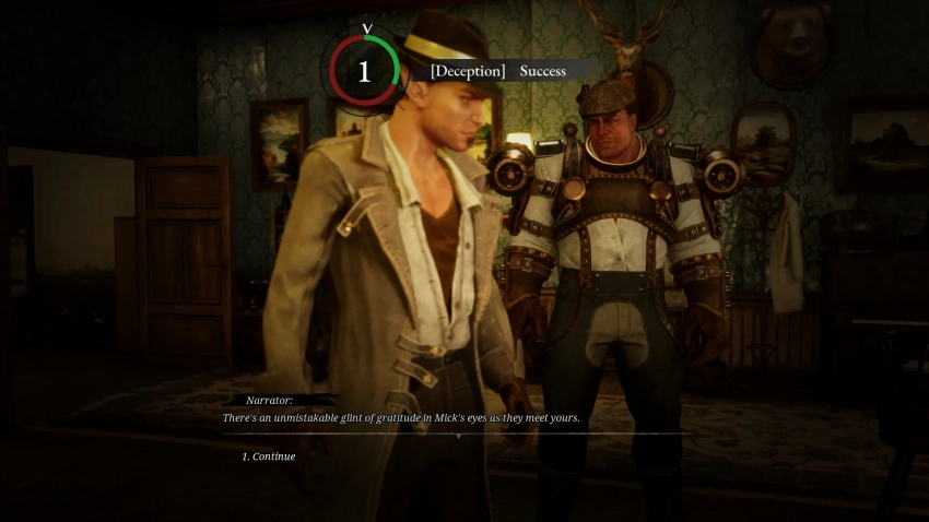 Проверки происходят и во время действия, и во время диалогов — здесь всё знакомо и понятно. При беседе персонажей разработчики могут давать от одного до нескольких вариантов, предполагающих использование местного аналога «броска кубика». И игрок выбирает, кто будет совершать проверку: главный герой или компаньон.