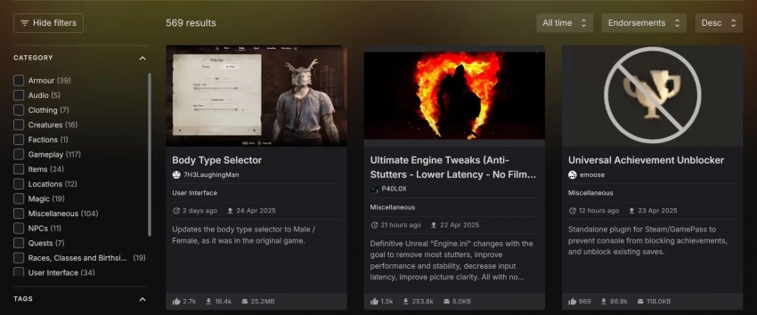 Между тем модификация Body Type Selector возглавила список самых одобряемых в разделе Nexus, посвящённом The Elder Scrolls 4: Oblivion Remastered.